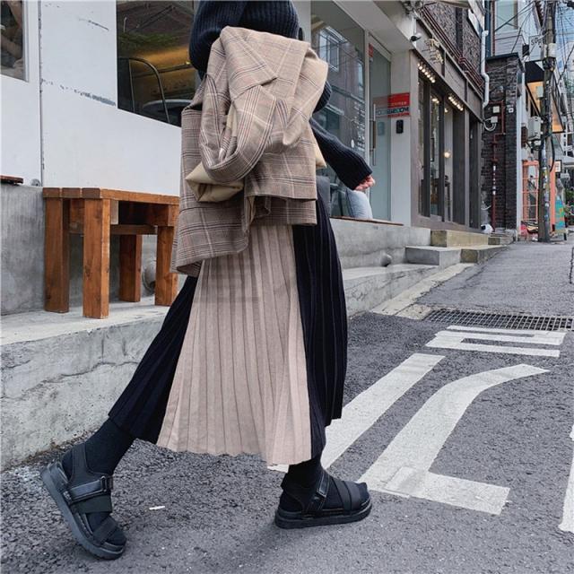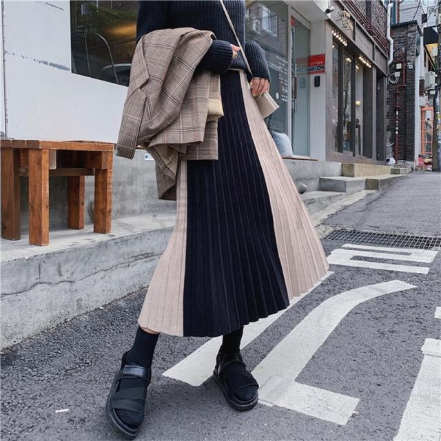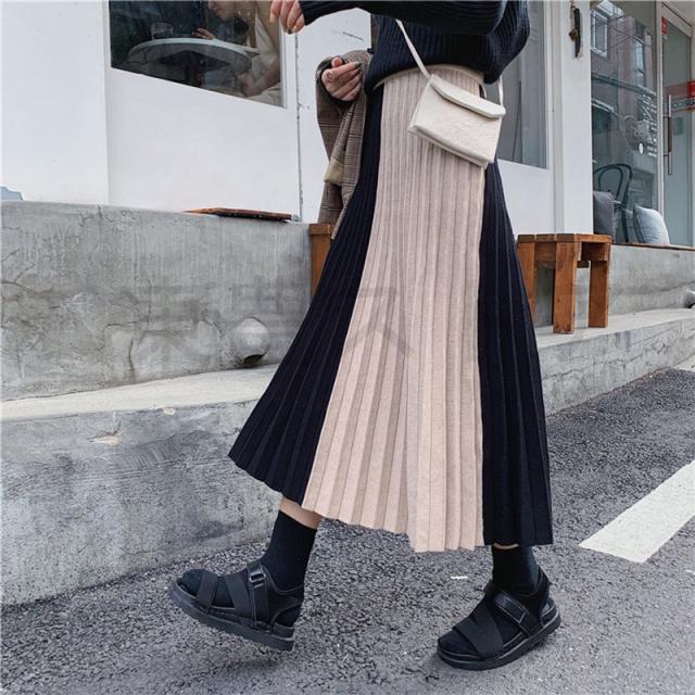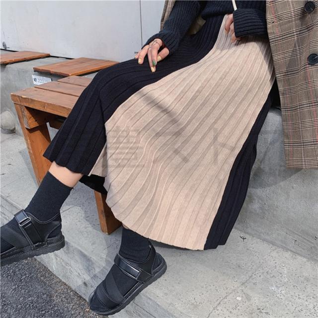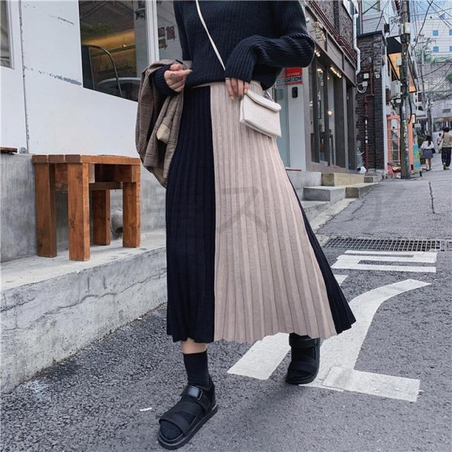 ロング レディース 秋 冬 プリーツスカート 切り替え ニットスカート ボトムス Aライン 体型カバー お洒落 通勤 OL 上品 秋コーデ 送料無料 大人かわいい カジュアル 女性らしい オフィスカジュアル 通勤 普段着 おしゃれ着 きれい