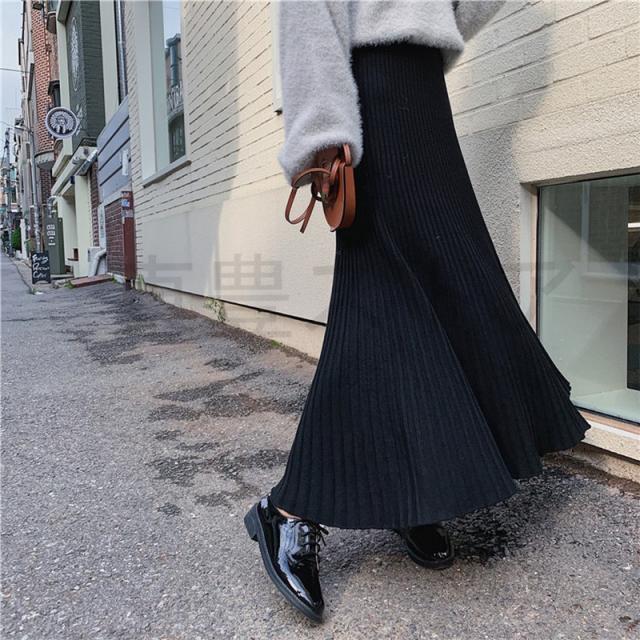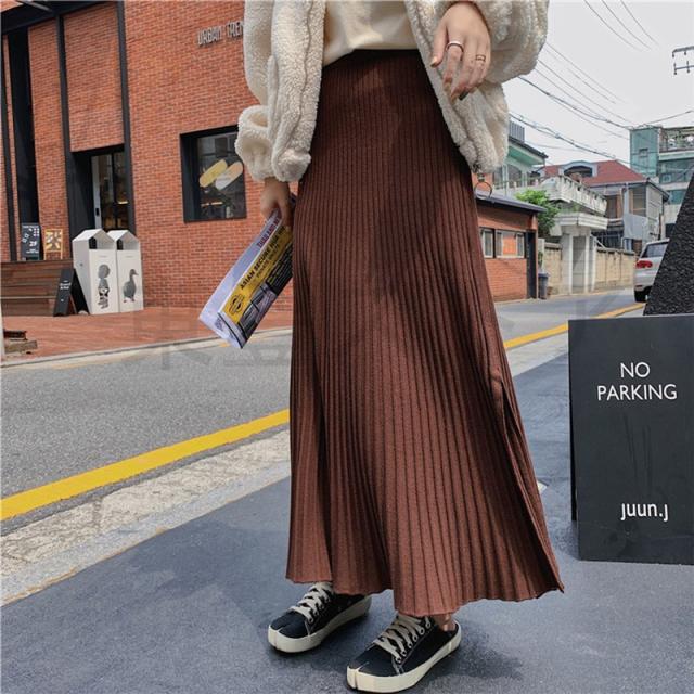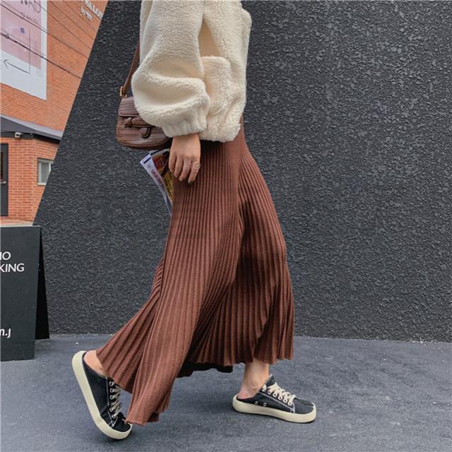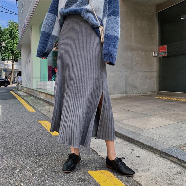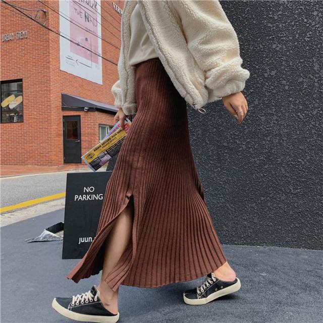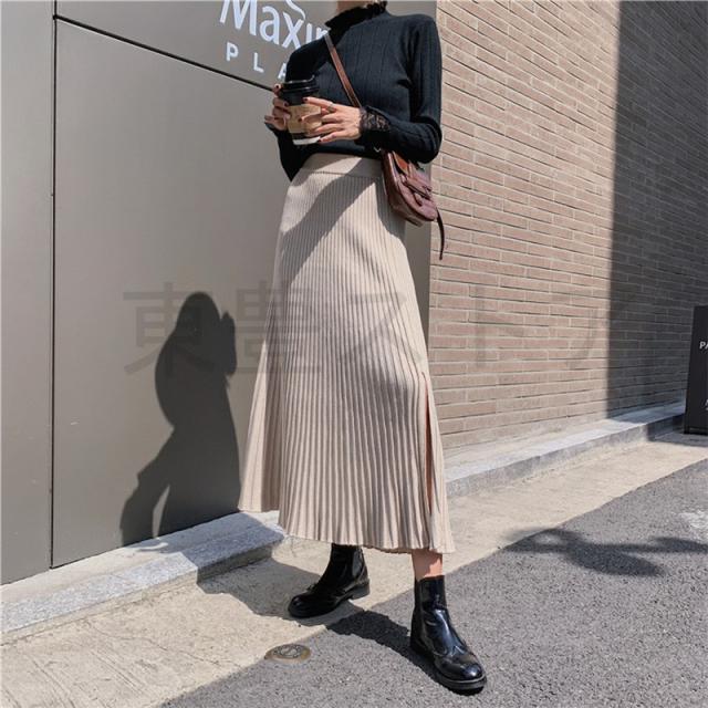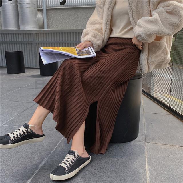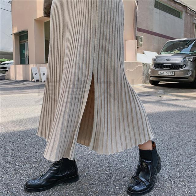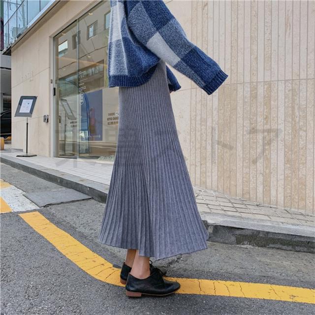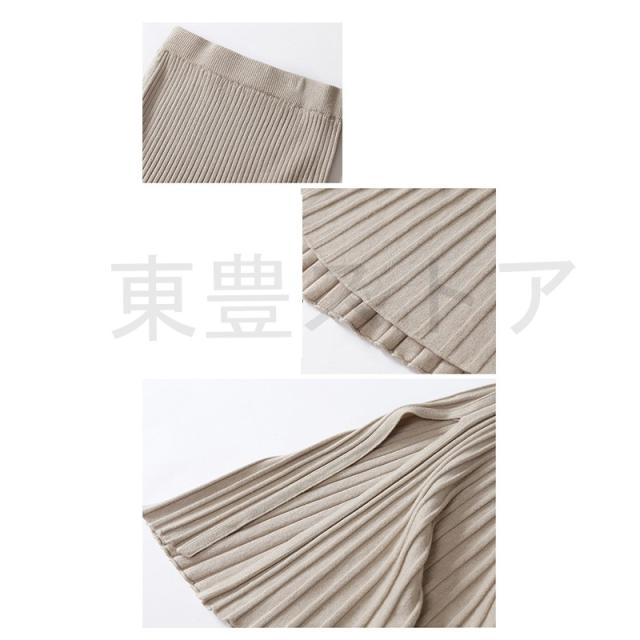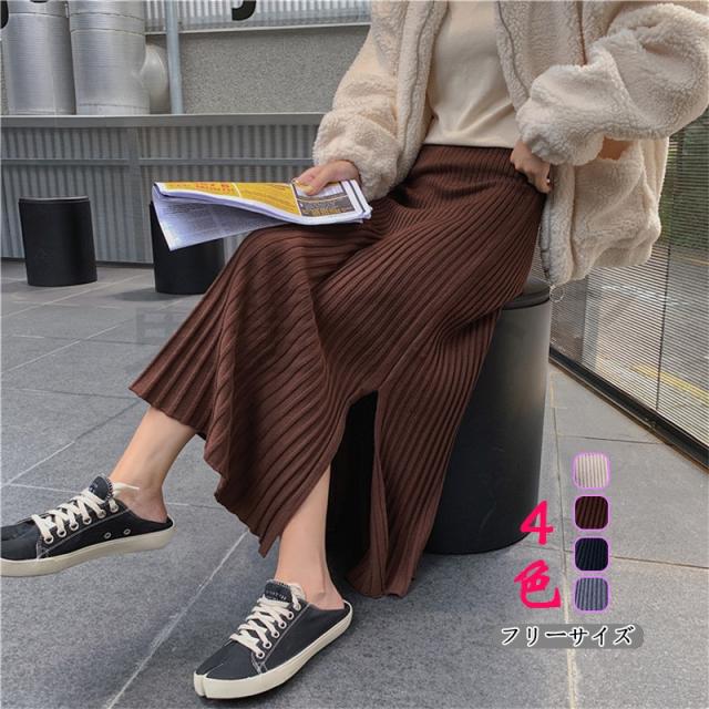 ニットスカート レディース ハイウエスト フレアスカート 送料無料 スリット Aライン プリーツスカート お洒落 ミモレ丈スカート ウエストゴム 大人かわいい カジュアル 女性らしい オフィスカジュアル 通勤 普段着 おしゃれ着 きれい