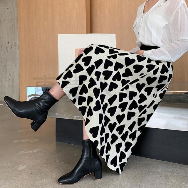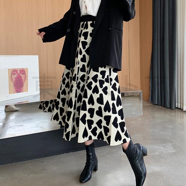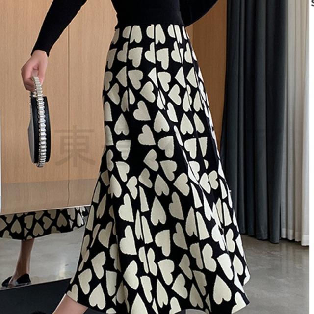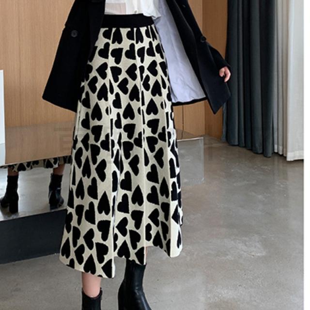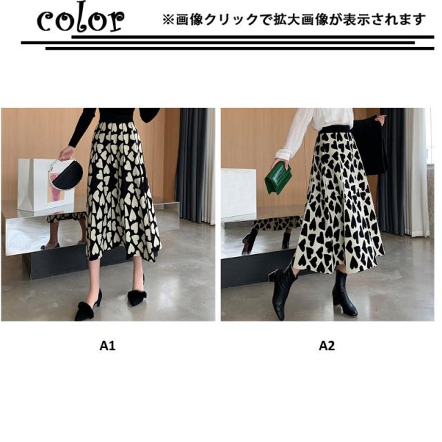 【キーワード】ニットスカート 厚手 ハート柄 体型カバー フリーサイズ ロングスカート レディース ハイウエスト Aラインスカート ゆったり 着痩せ 秋冬 デイリーコーデ ニットスカート ファッション エレガント おしゃれ