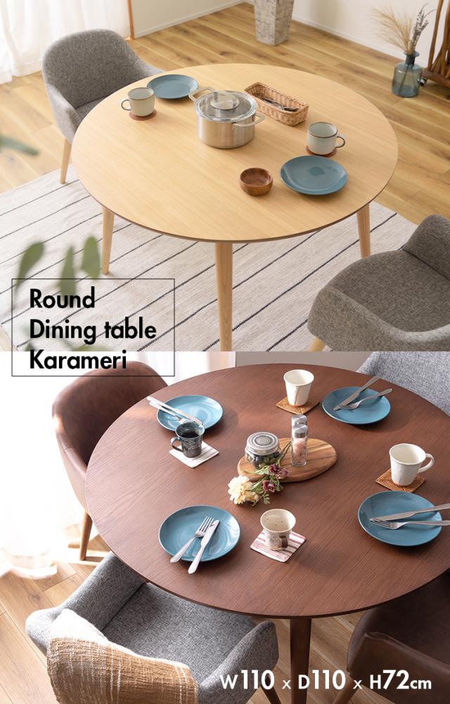 円形 ダイニングテーブル 幅110cm Karameri(カラメリ) 2色対応 テーブル単品 丸テーブル 円形テーブル ミーティングテーブル 食卓テーブル 2人用 4人掛け 木製 アッシュ材 円型 丸型 丸形 作業台 おしゃれ
