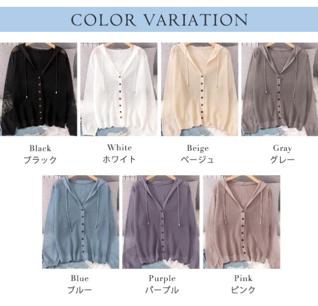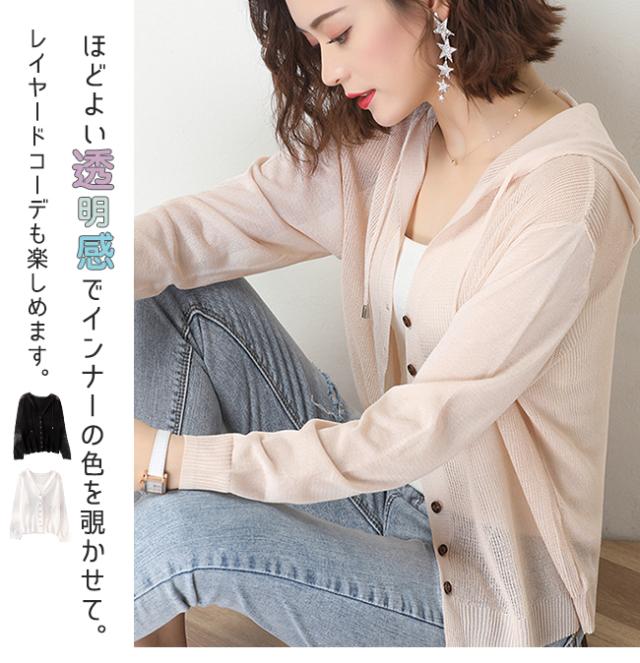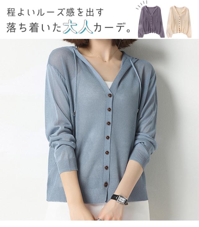 カーディガン フード付き 涼感 サマーニット uvカット 薄手 レディース 春夏 トップス 長袖 接触冷感 ひんやり 涼しい 紫外線対策 無地 透け感 きれいめ おしゃれ 軽量 オフィス 冷房対策 服 羽織もの カーデガン 日焼け防止グッズ 大人 50代 40代 30代 20代 女性用 白 黒 ベイクドカラー かわいい 紫外線ガード uv対策 ニットカーディガン【商品説明】UV対策にも冷房対策にもピッタリのカーディガン☆コーデに合わせやすくて、重ね着にも重宝しちゃう♪インナーを変えてロングシーズン活躍◎※サイズ表記は目安です。誤差はご了承ください。※モニター環境や生産の関係により写真と色、柄が若干異なる場合があります。※この素材は、色落ちの性質がありますので、お取扱いにご注意ください。※商品は縫製上の細かいほつれ、汚れ、素材特有の臭いが残っている場合がございますので、気になるお客様はご購入をお控え下さい。素材:レーヨン混紡カラー:ブラック ホワイト ベージュ グレー ブルー パープル ピンク