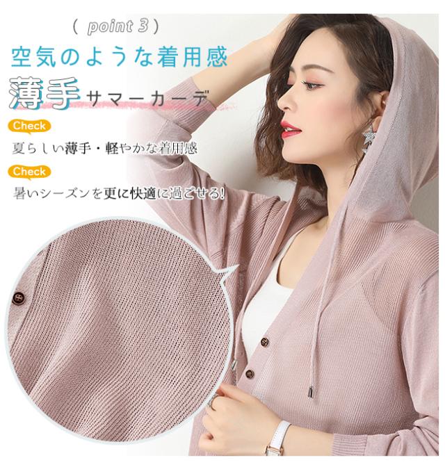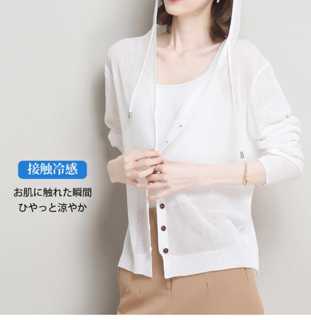 【即納】超買得 カーディガン フード付き 涼感 サマーニット uvカット 薄手 レディース 春夏 トップス 長袖 接触冷感 ひんやり 新作