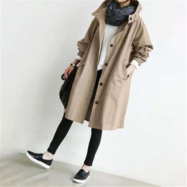 トレンチコート 春服 レディース ライトコート 秋冬 ミリタリー ロング 防寒 フード 長袖 スプリングコート カジュアル モッズ ジャ
