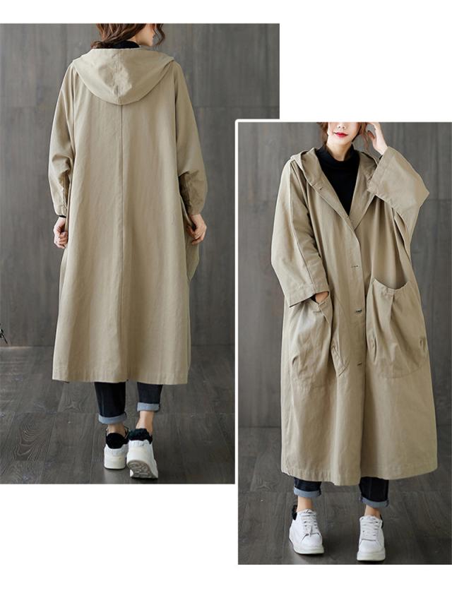 トレンチコート レディース ライトコート アウター ロング フード付き きれいめ オーバーサイズ 秋冬 カジュアル ファッション