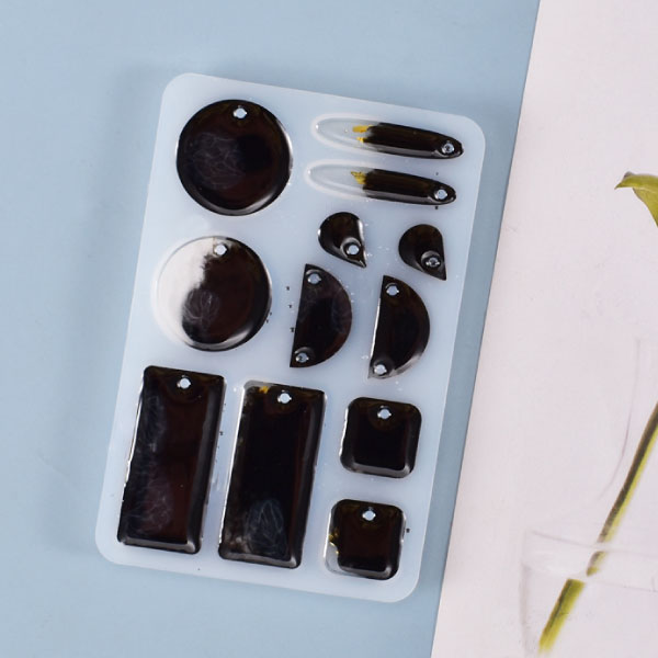 シリコンモールド モールド 幾何学 シリコン型 レジン キーホルダー 穴 UVレジン 手芸 アクセサリー ハンドメイド イヤリング ペンダント ネックレス ネームプレート 小さめ ペア