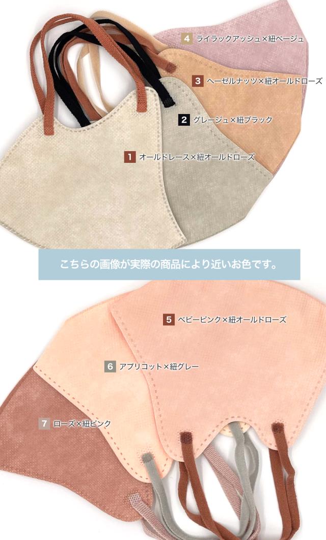 | ●カラー 【1】オールドレース×耳紐オールドローズ【2】グレージュ×耳紐ブラック【3】ヘーゼルナッツ×耳紐オールドローズ【4】ライラックアッシュ×耳紐ベージュ【5】ベビーピンク×耳紐オールドローズ【6】アプリコット×耳紐グレー【7】ローズ×耳紐ピンク ■画像はなるべく実物に近いよう撮影しておりますが光の加減や、各御家庭でのPC環境によって色合いが異なる場合がある事をあらかじめご了承下さい。 |