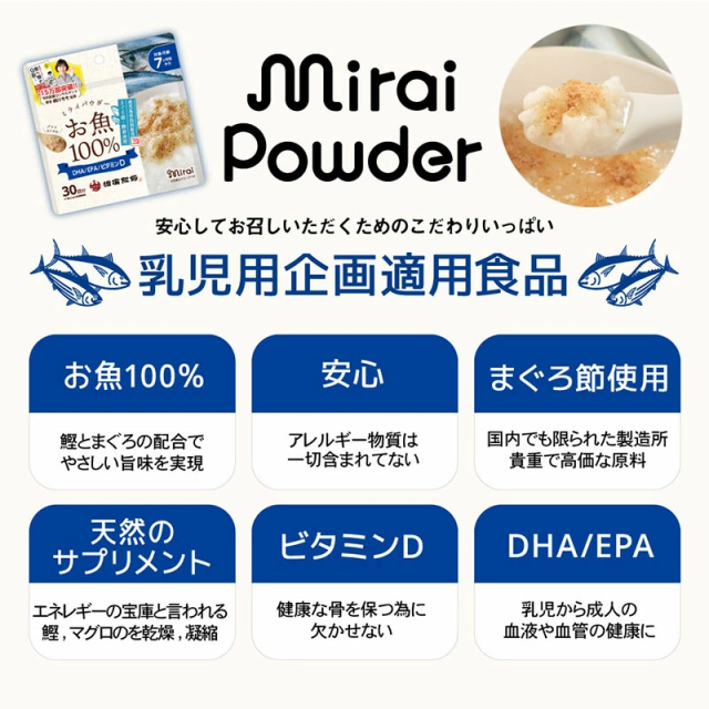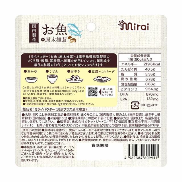 ミライパウダー 【お魚パウダー】 椎茸粉末入り 鹿児島県産 国内生産 まぐろ かつおのふし フリーズドライ 栄養満点離乳食 ふりかけ ベビーフード パウダー 健康パウダー DHA EPA ビタミンD 離乳食だし