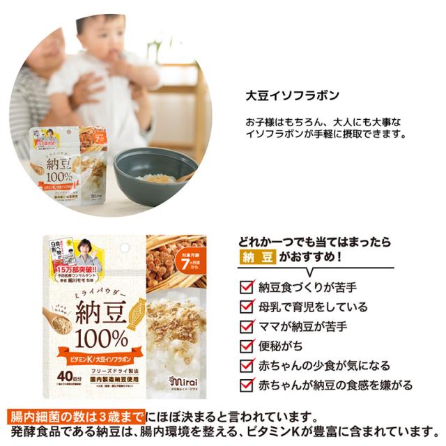 ミライパウダー 【納豆パウダー】 40g 国産大豆 国内生産 フリーズドライ製法 まるごと納豆 栄養満点離乳食 ベビーフード パウダー おやつ 離乳食 ふりかけ
