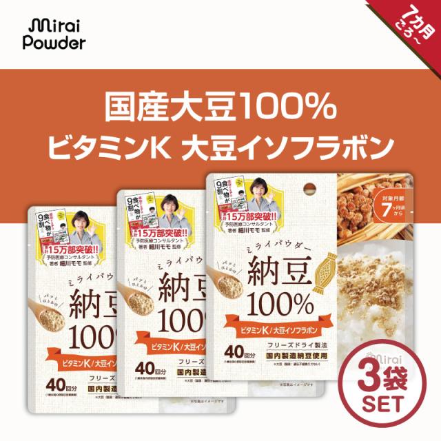 ミライパウダー 【納豆パウダー 3個セット】 40g 国産大豆 国内生産 フリーズドライ製法 無添加 まるごと納豆 栄養満点離乳食 納豆ふりかけ ベビーフード 粉末 パウダー おやつ