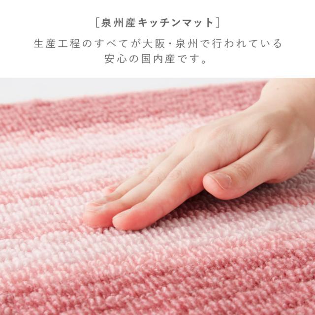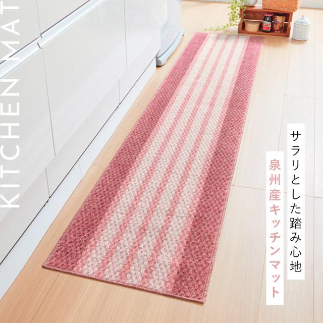 キッチンマット キッチンラグ 240cm 240×45 ボーダー すべり止め 滑り止め マットピンク 明るい キッチン インテリア かわいい おしゃれ 泉州産キッチンマットピンクボーダー 45×240cm