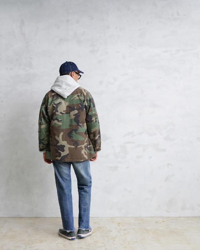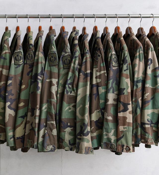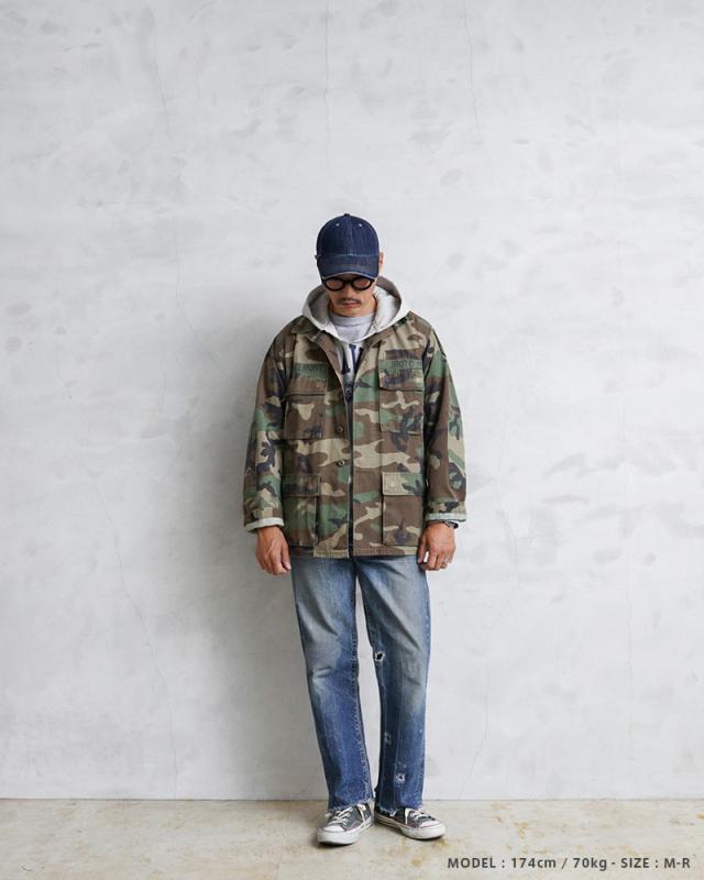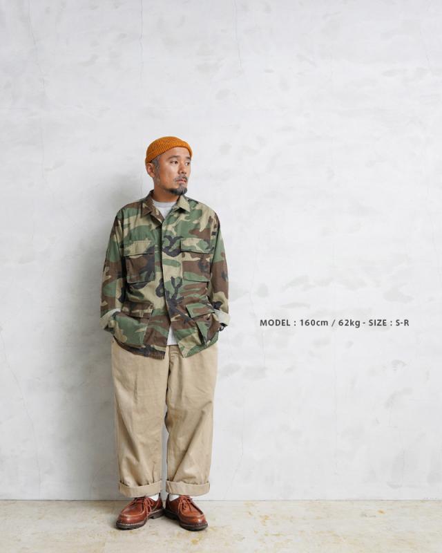 | 商品説明 | 実物 USED 米軍 BDU WOODLAND CAMO ジャケット 中期型 ノンリップのご紹介です。 制式名称:COAT,WOODLAND CAMOUFLAGE PATTERN,COMBAT 1981年より約30年以上にわたり全米軍で使用され、米海兵隊では2005年、米陸軍では2008年、米空軍では2011年、米海軍では2012年まで使用されたウッドランドカモ柄のBDU(野戦服)です。その後もアメリカ陸軍特殊部隊のグリーンベレーではウッドランドのBDUジャケットが限定で継続使用されていました。 こちらの中期型の特徴としては、1984年頃から1995年頃まで生産されたモデルで、胸ポケットのマチが外側に設けられており、襟の形状が中期型以降は小さくなり、袖口の調節用タブは前期、中期、後期になるにつれて幅広で短い形状へと変更されました。中期型にのみウエスト部分に調節用のアジャスターが付属しています。 BDUとは「Battle Dress Uniform」の略で、戦闘服のことであり、BDUジャケットの特徴とも言える4つのフロントポケットは2重構造のフラップがついており、ボタンが外に露出しない仕様です。4箇所のポケットはマチ付きで立体的なデザインになっています。フロントは比翼仕立てでボタンが引っかからない仕様、肘部分には補強のためにあて布がされた2重構造、袖はボタンで調節可能、左胸のポケットの内側にはペンホルダーが備わっており、細部にまでこだわり抜かれたデザインとなっています。 NYCO(ナイコ)と呼ばれるコットン、ナイロンの混紡素材が使用されており、リップストップに比べ、こちらのノンリップのツイルタイプは放出される機会が少ない印象です。リップストップとノンリップは同じデザインでも雰囲気が変わりますので、その日の気分でお好みのタイプをセレクトして下さい。 米軍のアイテムとして代表的なBDUジャケットですが、近年放出が少なくなり、年々希少価値が上がっており、入手することが非常に困難になってきたアイテムの1つです! 新品には出せない風合いのよい生地のアタリやムラ感などが、他と被らない1点物のような魅力を感じていただけると思います。これから更に着込んでいただくことにより様々な表情を見せてくれる1枚です。 | ||||||||||||||||||||||||||||||||||||||||||||||||||||||||||||||||||||||||||||||||||||||||||