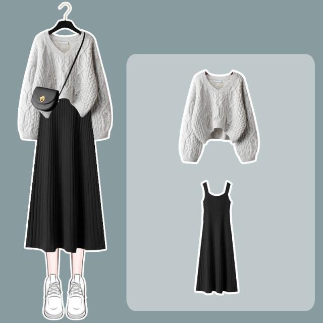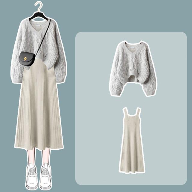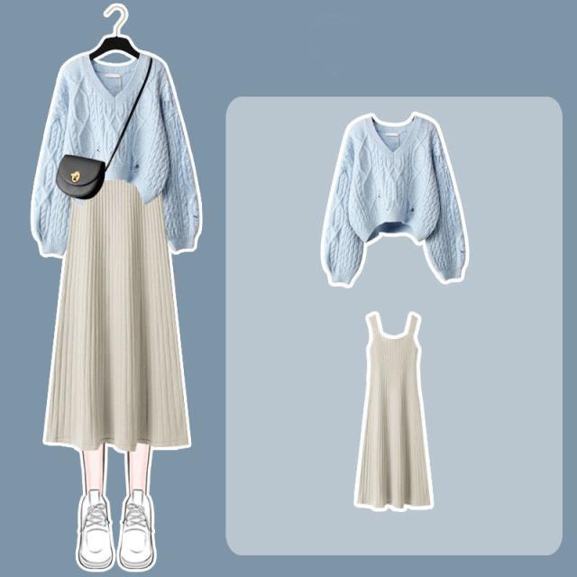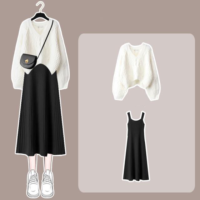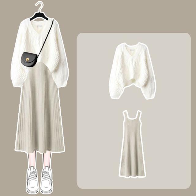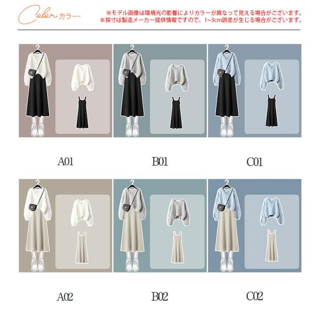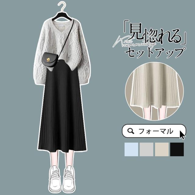 【水曜日まで!10%クーポン配布中】 セットアップ ワンピース 長袖 秋冬 レディース ニット セーター トップス ロングワンピース vネック 上下セット 通勤 着痩せ オシャレ ゆったり
