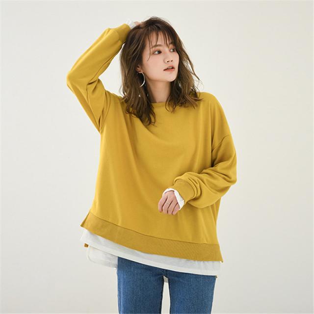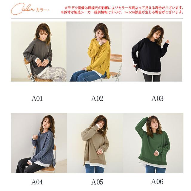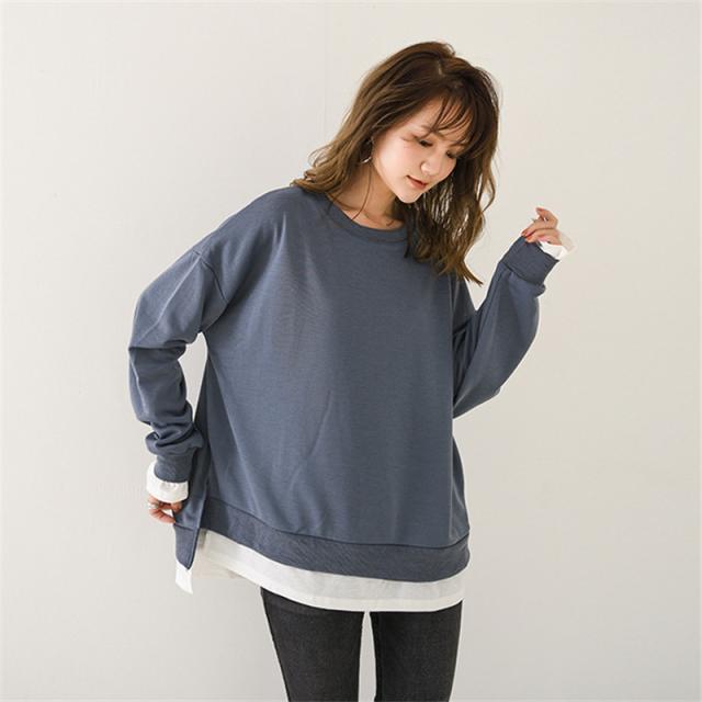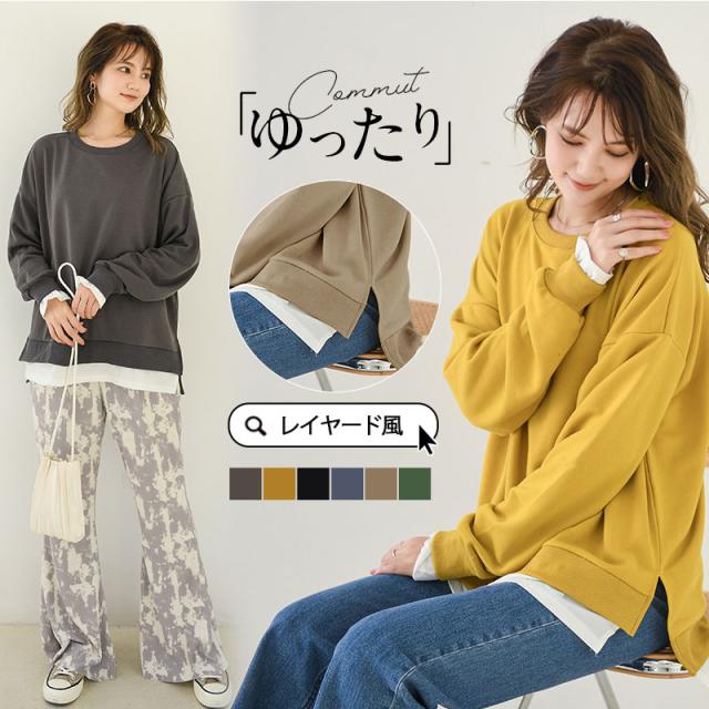 【水曜日まで!10%クーポン配布中】 Tシャツ レディース トップス 長袖 レイヤード風 カットソー ティーシャツ 着痩せ カジュアル 体型カバー インナー 重ね着 ルームウェア ブラウス おしゃれ