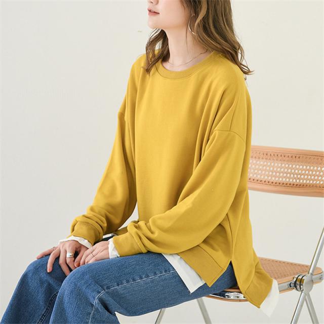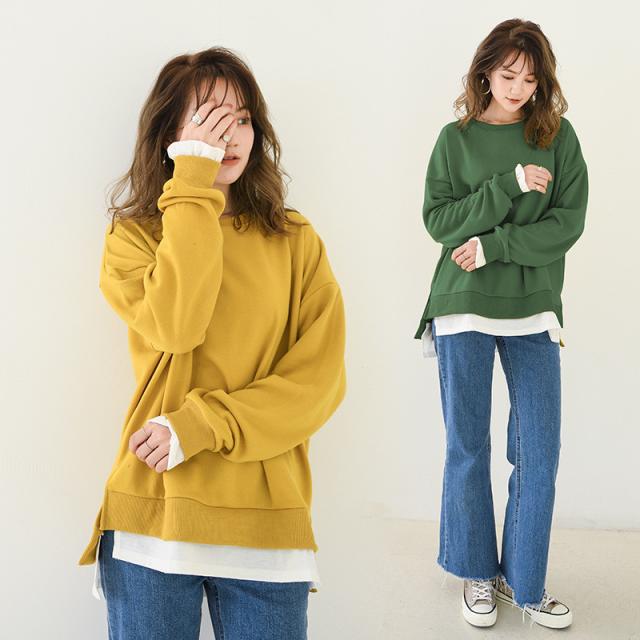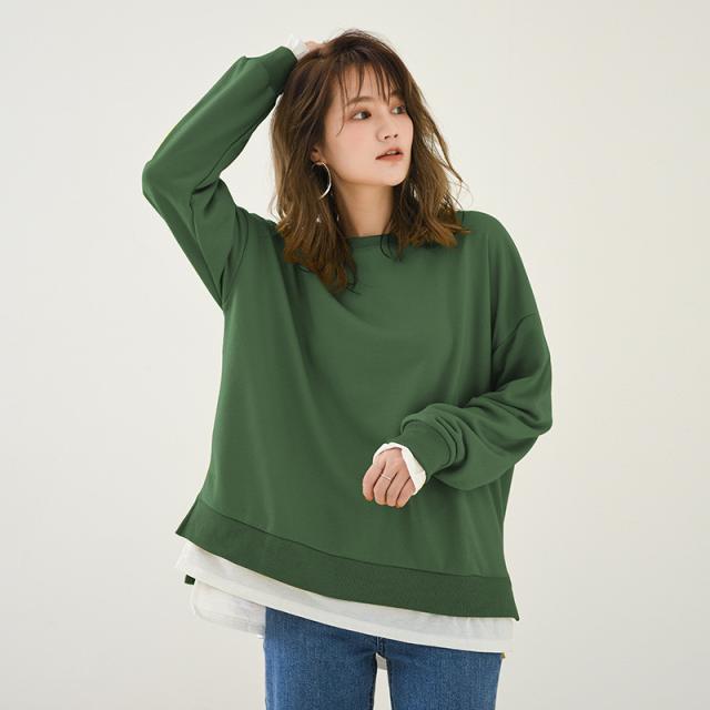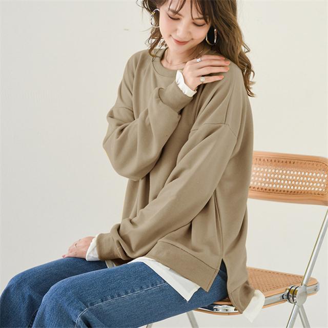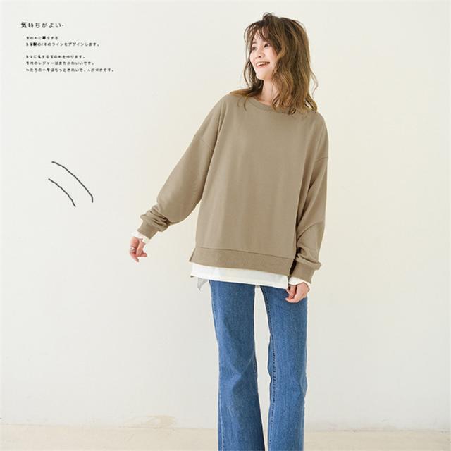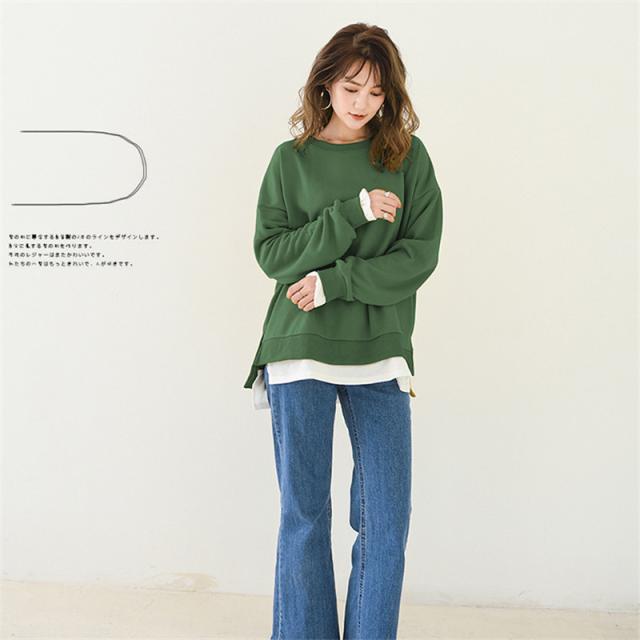 長袖 重ね着コーデ ゆったりサイズ 裾見せコーデ 裾出しコーデ インナー レイヤードコーデ 春 夏 秋 冬 オールシーズン 綿素材 秋服 レディース