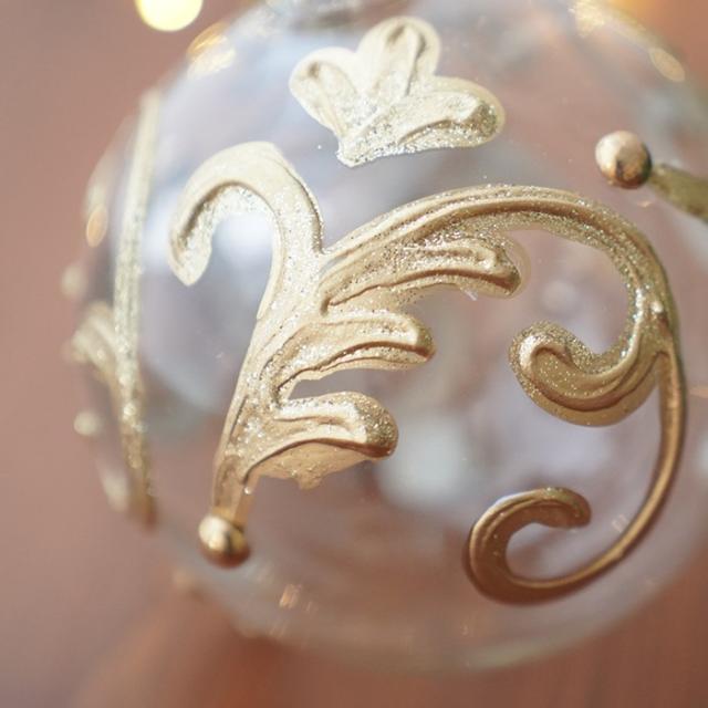 アールヌーボーなゴールドペイントのガラスボールオーナメント。