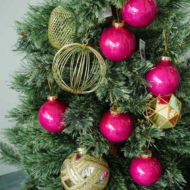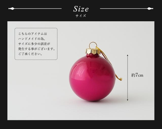 ★鮮やかな色合いが印象的なフーシェピンクのボールオーナメント。 メタリックなテクスチャーでツリーに飾れば存在感抜群です。 ビビッドなカラーリングでいつものクリスマスツリーを一味違うテイストにチェンジ。きらびやかで可愛らしいツリーでは物足りない方にもおすすめのアイテムです。 直径7cm、6個入りセットです。 |