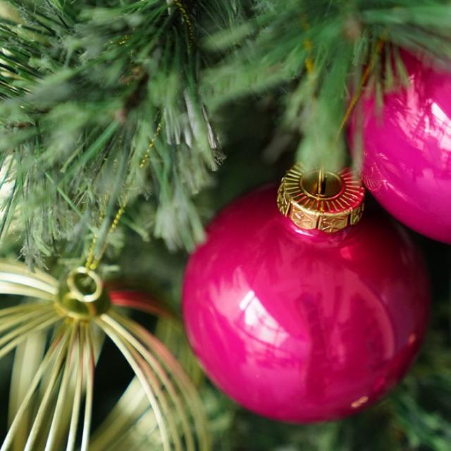 鮮やかな色合いが印象的なフーシェピンクのボールオーナメント。