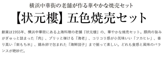 【状元樓】五色焼売セット 中華 焼売 点心 グルメ お取り寄せ 横浜中華街 じょうげんろう 土産 御歳暮ギフト