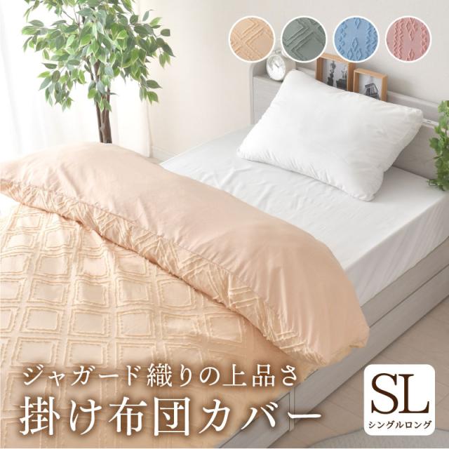 掛け布団カバー シングルロング 掛けカバー ジャガード 丸洗い スナップボタン おしゃれ シンプル ナチュラル ボタン式 150×210cm 全開ファスナー 選べる4色
