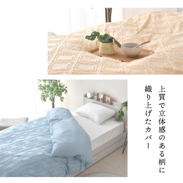 ジャガード織りで生地に直接柄を織り込んでいるので、立体感と高級感のある掛布団カバーです。