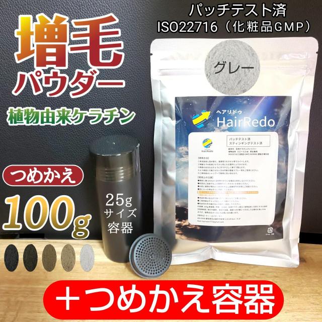 増毛パウダー ヘアリドゥ グレー100g +詰め替え容器 薄毛ヘアパウダー ふりかけ 増毛粉 ヘアファンデーション ヘアカラー はげ隠し 白髪隠し かくし 白髪染め 女性 男女兼用 頭頂部 分け目 生え際 円形脱毛症 つめかえ