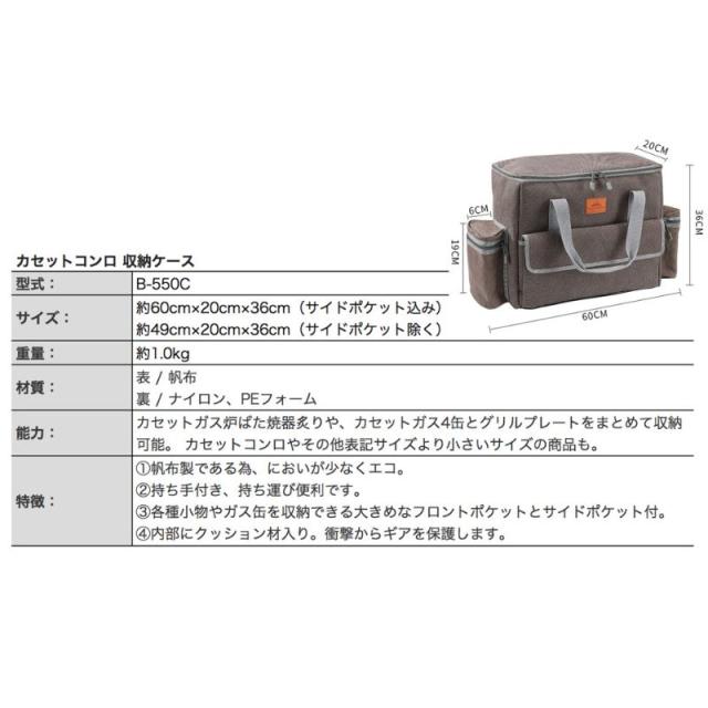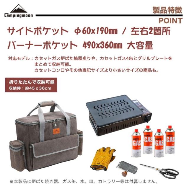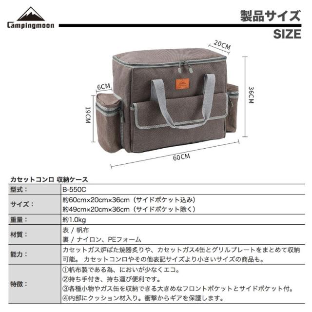 キャンピングムーン(CAMPING MOON) イワタニ 炉ばた焼器 炙りや?U 専用 収納バッグ 帆布製 アウトドア カセットコンロ カセットガス収納 収納ボックス B-550C