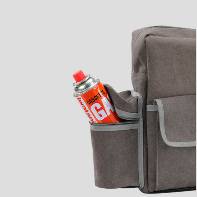 素材はコットンキャンパスでおしゃれなデザインでツインバーナーとその燃料をまとめて収納できます。