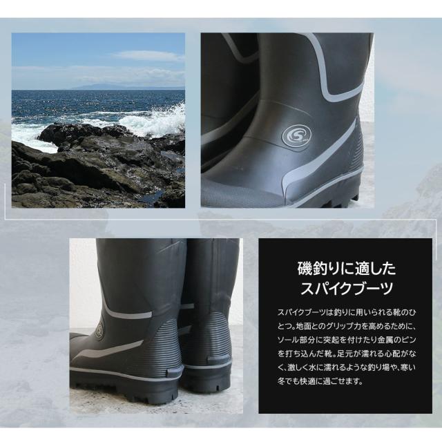 スパイクブーツ メンズ フィッシング ブーツ ピンスパイク フード付き スチールシャンク スパイクソール 長靴 シューズ 柔らかい 歩きやすい 動きやすい ロングブーツ 釣靴 釣り 磯 川 山 耐滑性 アウトドア 防滑 ブラック 黒 男性 土木作業 安全 857 送料無料