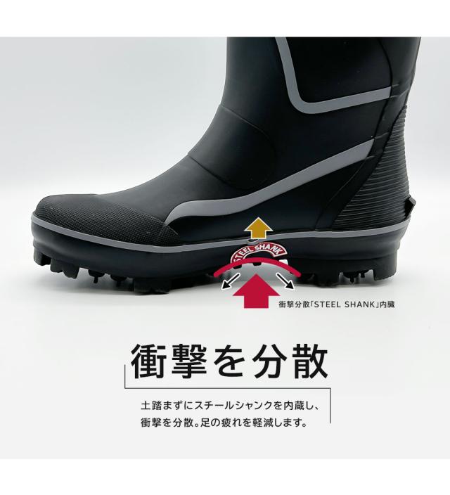 ・土踏まずにスチールシャンクを内蔵し、衝撃を分散。足の疲れを軽減します。