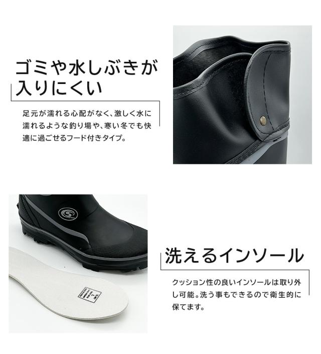 足元が濡れる心配がなく、激しく水に濡れるような釣り場や、寒い冬でも快適に過ごせるブーツタイプ。