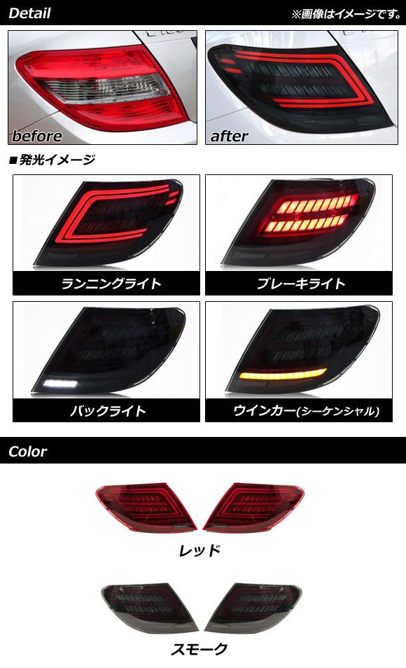 LEDテールランプ メルセデス・ベンツ Cクラス W204 2007年06月〜2014年06月 レッド シーケンシャルウインカー連動 入数:1セット(左右) AP-RF176-RD