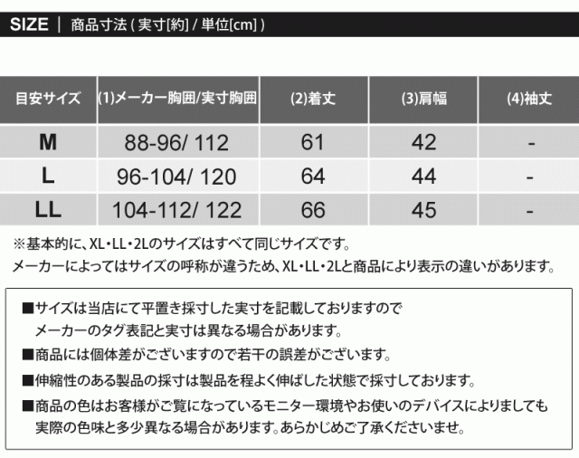 ※基本的に、XL・LL・2Lのサイズはすべて同じサイズです。