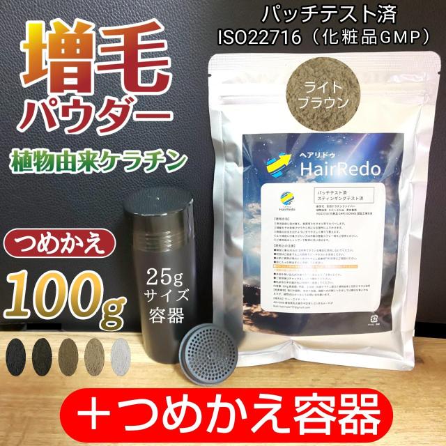 増毛パウダー ヘアリドゥ ライトブラウン100g +詰め替え容器 薄毛ヘアパウダー ふりかけ 増毛粉 ヘアファンデーション ヘアカラー はげ隠し 白髪隠し かくし 白髪染め 女性 男女兼用 頭頂部 分け目 生え際 円形脱毛症 つめかえ