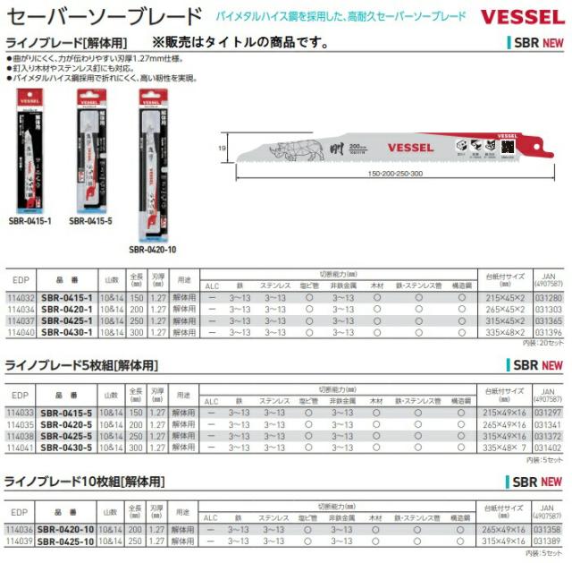 ベッセル ライノブレード 解体用 1枚入 SBR-0425-1 セーバーソーブレード VESSEL 031365 ネコポス可 。