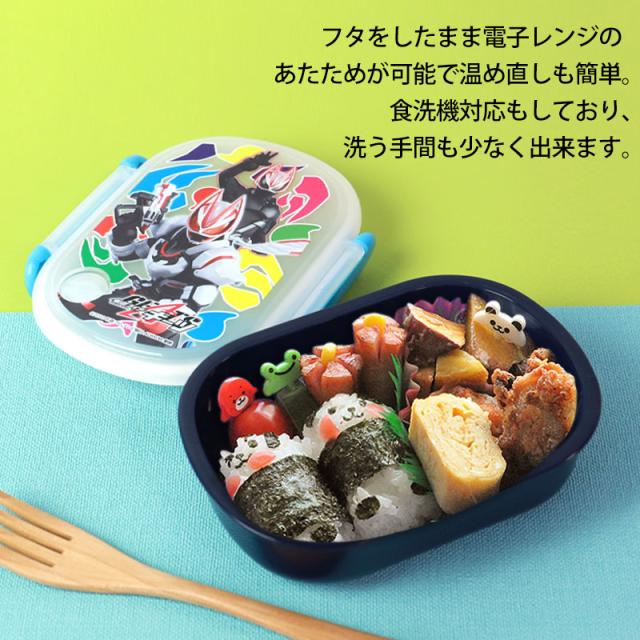 | 商品説明 | 仮面ライダーの小判型お弁当箱です。 エア調整弁付きで食品を冷まさず入れても大丈夫なので朝の忙しい時にピッタリ! また、フタの吸着を防ぎます。 フタをしたまま電子レンジが可能で温め直しも簡単。 食洗機対応もしており、洗う手間も少なく出来ます。 おかずの入れ分けに便利なおかず入れ付です。 かっこいい仮面ライダーのお弁当グッズでお子様のランチタイムも楽しくなりそうですね! |