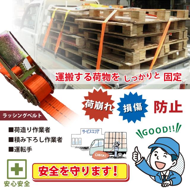 ● 幅の広いベルトで、荷物を損傷することなく安定した荷締めができます。