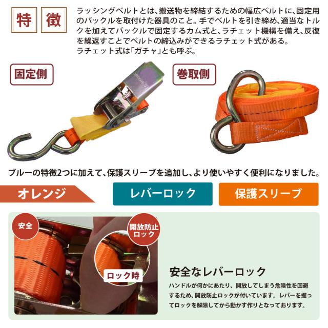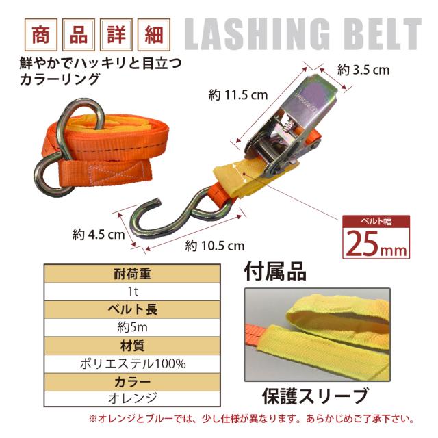 ラッシングベルト ガチャガチャ ラチェット式 バックル式 Sフック 幅25mm 固定側0.5m 巻側5m 工具 作業