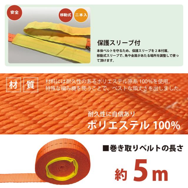 ● ベルトは高強度のポリエステル原糸100%を使用し、耐久性は抜群です。