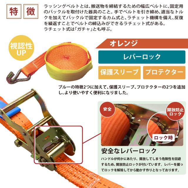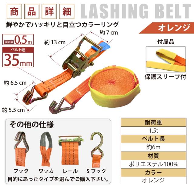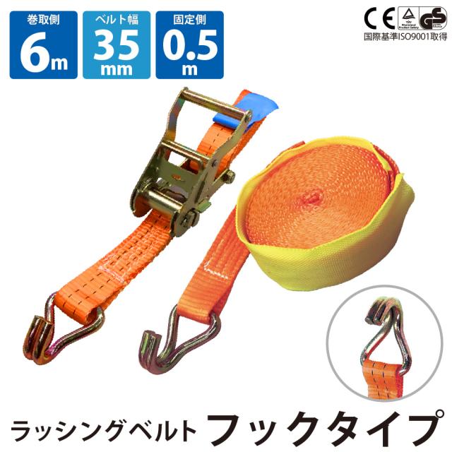 ラッシングベルト ガチャガチャ ラチェット式 バックル式 Jフック 幅35mm 固定側0.5m 巻側6m 工具 作業