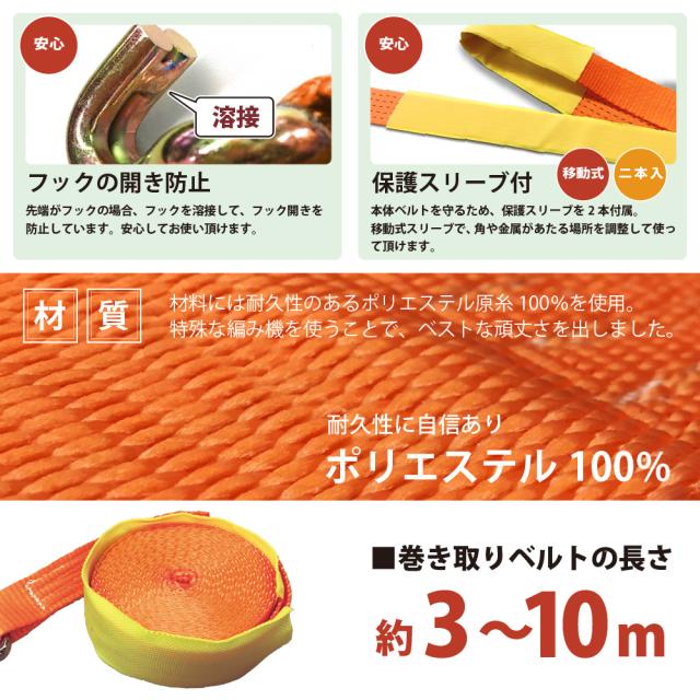 ● ベルトは高強度のポリエステル原糸を使用し、耐久性は抜群です。