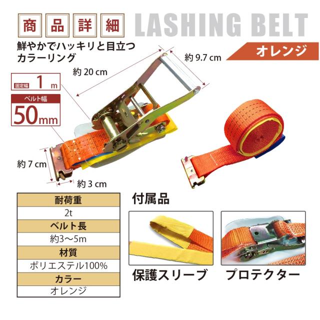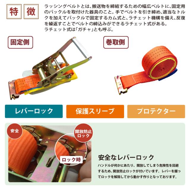 ラッシングベルト ガチャガチャ ラチェット式 バックル式 10本セット レール 幅50mm 固定側1m 巻側5m 工具 作業 送料無料