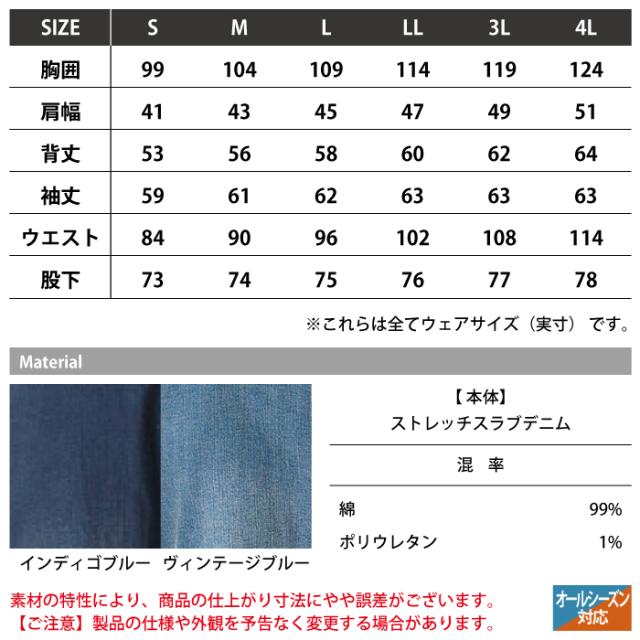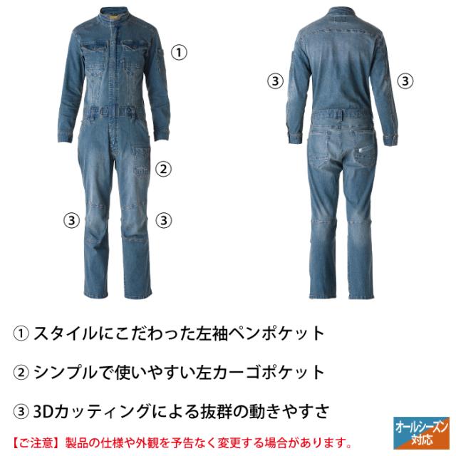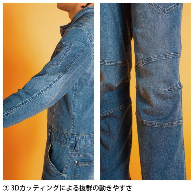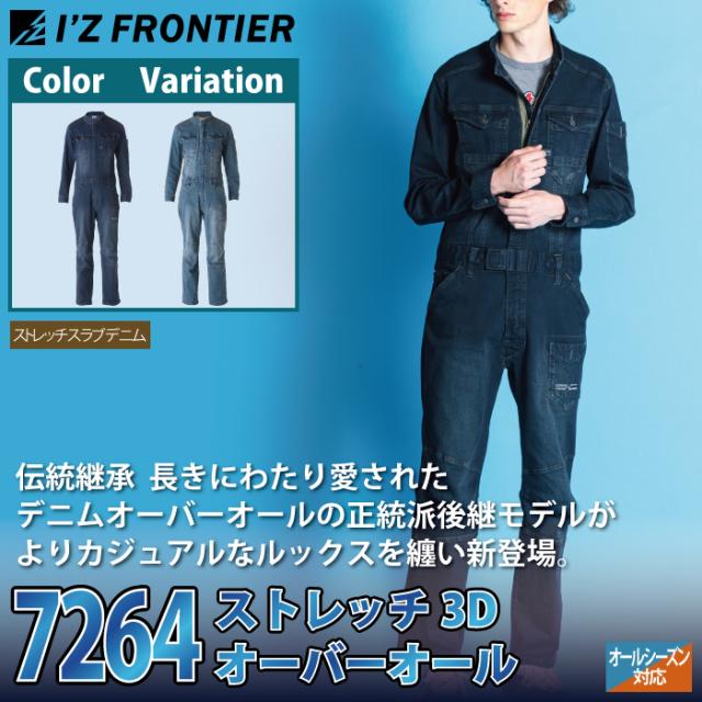アイズフロンティア 作業服 7264 3Dストレッチデニムオーバーオール S-4L 春夏秋冬