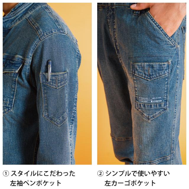 ◇年間を通じて着用可能は9オンスストレッチデニム素材を採用。適度なストレッチ性が快適な動きやすさを実現します。