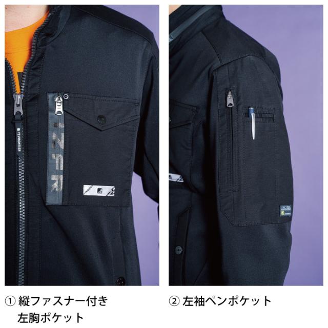 ◇機能:ハイブリッドモデル 快適性 ストレッチ性 キックバック性 屈強な生地強度 透け防止効果 高級感 縦ファスナー付左胸ポケット 左袖ペンポケット 右肩プリント 左胸内ポケット
