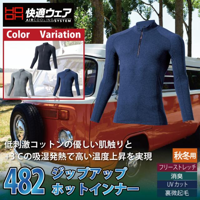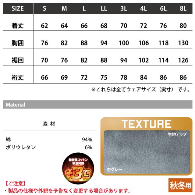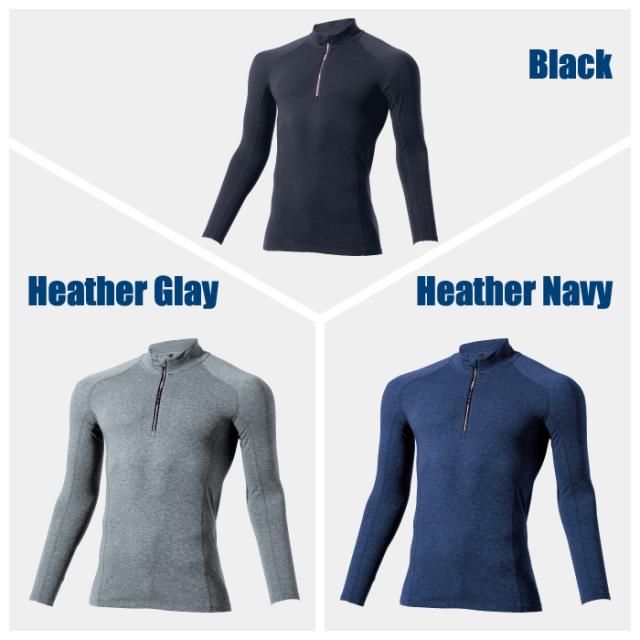 ◇機能:フロントファスナー・肌触りの良いフラットシーム加工・伸縮性に優れたフリーストレッチ素材・暖かく柔らかい肌触りの裏美起毛・悪臭を軽減する消臭テープを肩後ろと脇下に配置