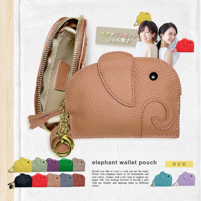 ゾウ ポーチ 本革使用 ペア プレゼント 人気 ギフト 動物 レザー ミニ財布 レディース メンズ キーケース コインケース ゾウ 象 コンパクト おしゃれ かわいい ウォレット