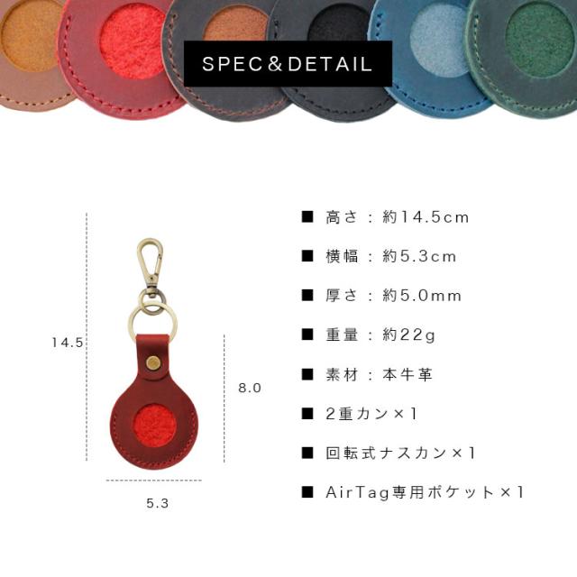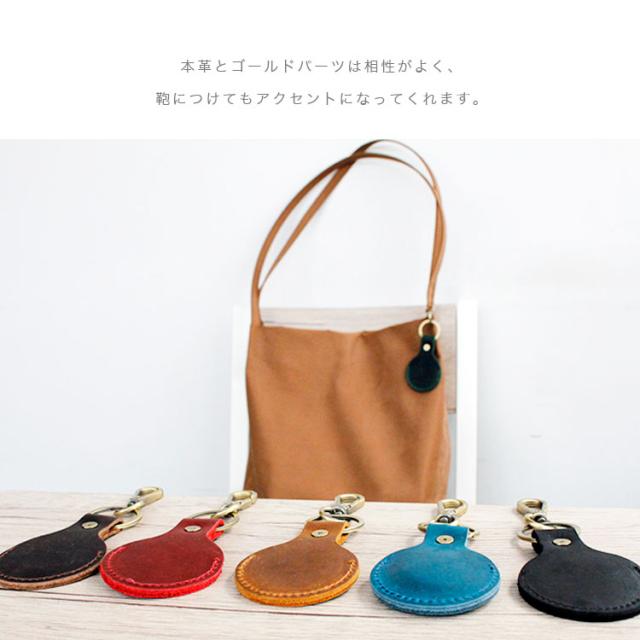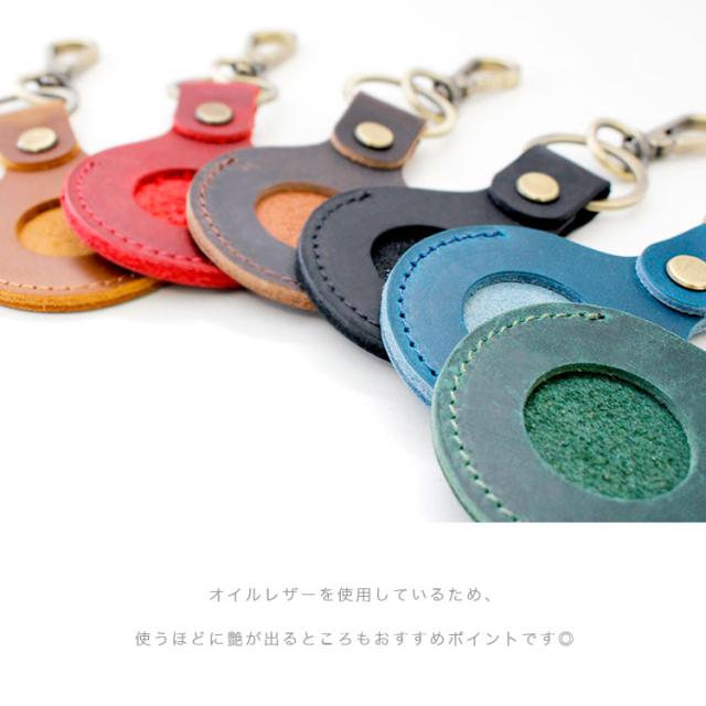 しっとりとしたマットな質感が特徴的なオイルレザーを使用したAirtag用のキーホルダーです。本革と相性のいいアンティークゴールドのパーツを使用しています。