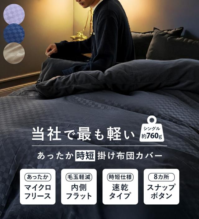 [keyword|あったか 掛け布団カバー シングル 衿・裏 マイクロフリース 毛布にもなる 市松柄 スナップボタン 冬用 布団カバー シングルロング 150×210cm チェック あたたか 暖か 秋 冬 当社限定品 シングルSL 節電]