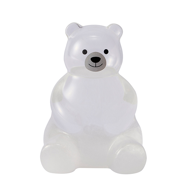 どしっとお座りする愛らしい表情のクリスタル白くまさん。