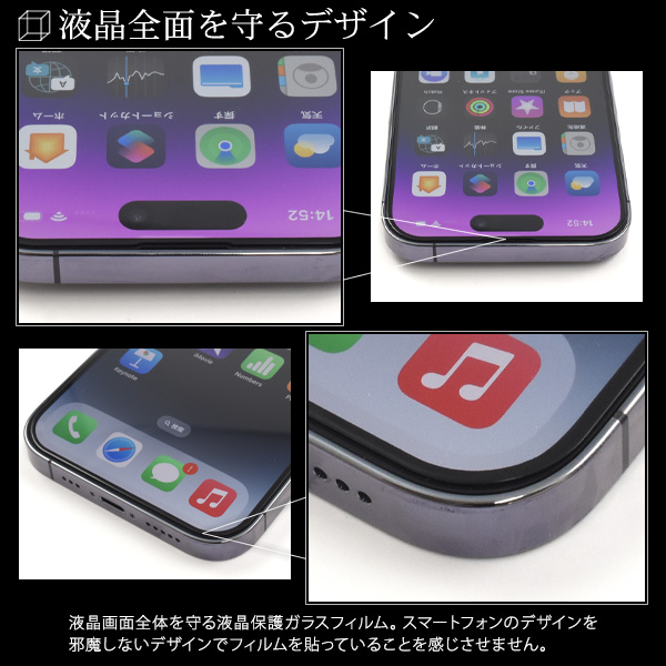 全画面液晶保護 ガラスフィルム iPhone14Pro用 液晶保護 全画面保護 保護シート 飛散防止 手触り 滑らか キズ防止 汚れ防止 保護フィルム ツルツル 薄型 液晶保護フィルム 保護シール iPhone保護シール SoftBank au docomo